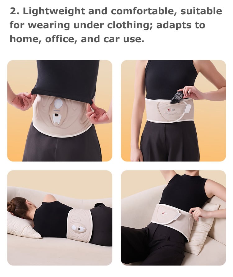 Constant temperature heat therapy promotes blood circulation in the waist area, improving issues such as cold uterus or waist coldness.