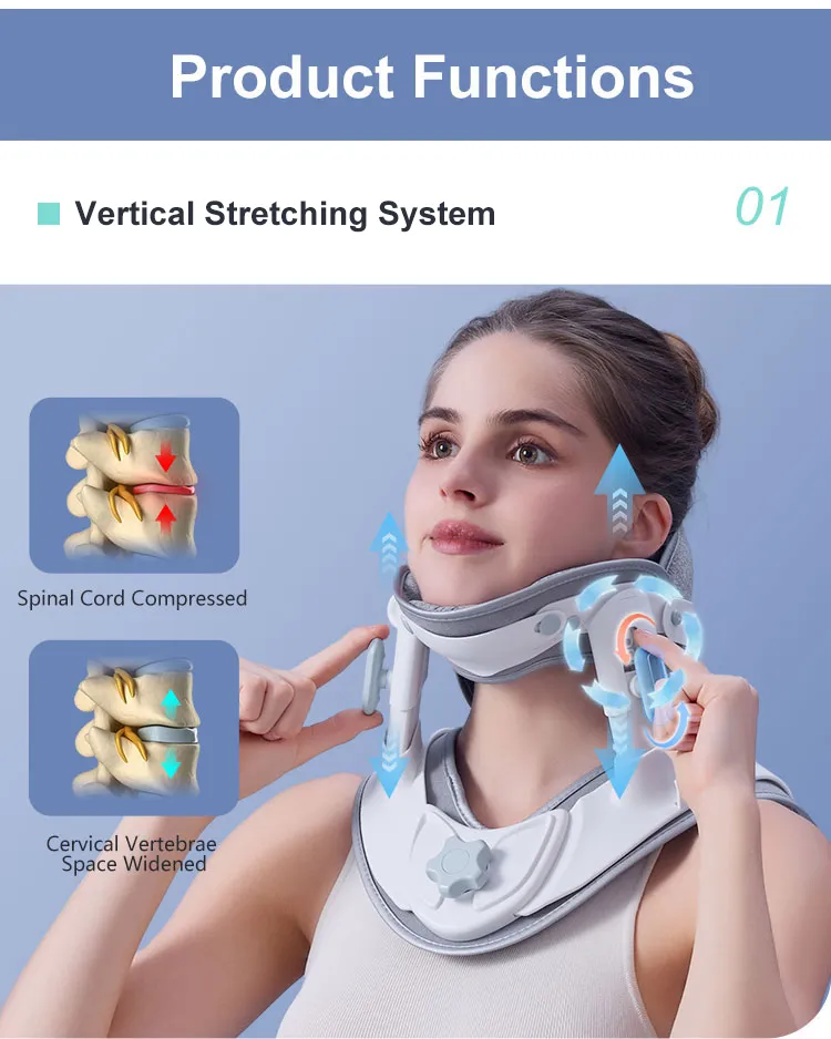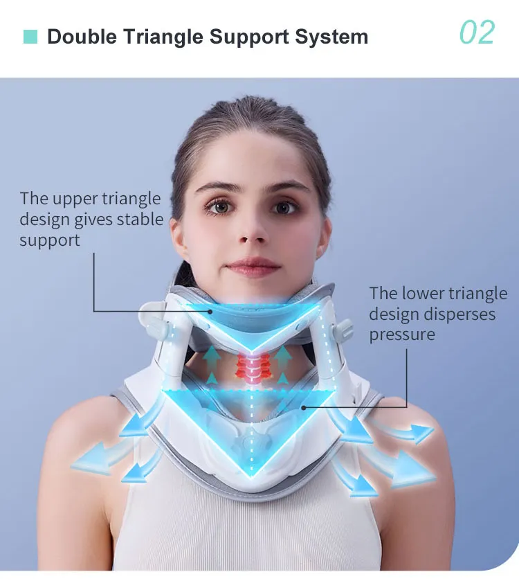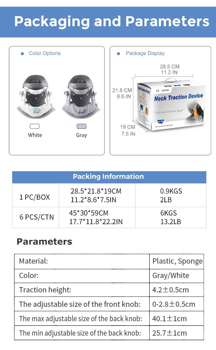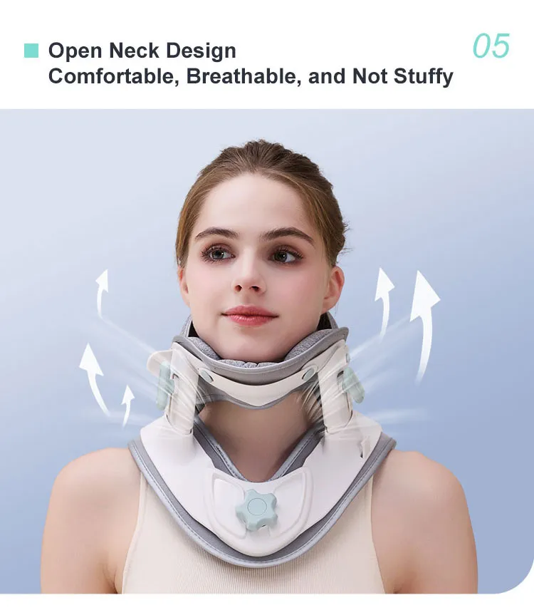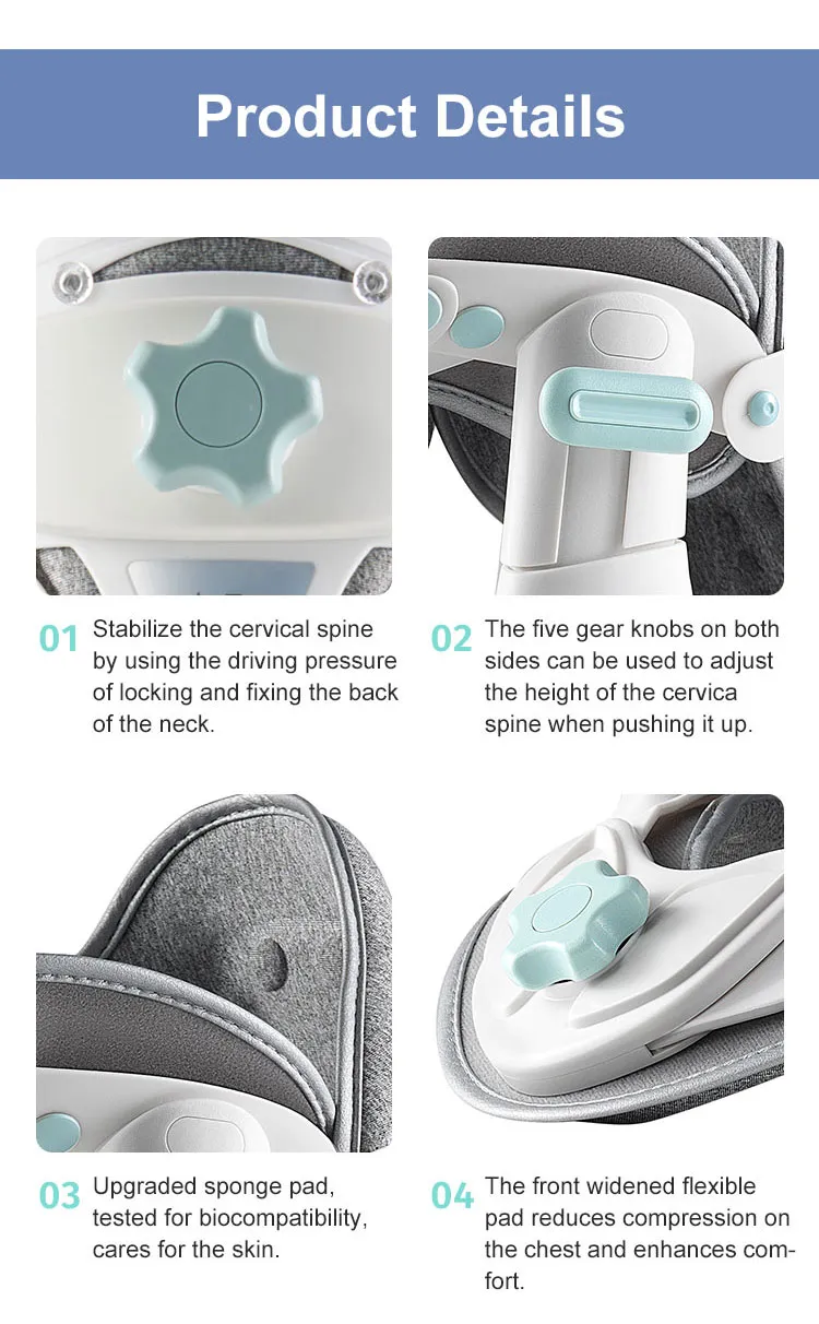 This cervical traction device suitable for the treatment of cervical spondylosis, nerve root cervical spondylosis, cervical back myofascial inflammation, cervical disc herniation and other cervical spondylosis, as well as auxiliary fixation after cervical spine surgery.