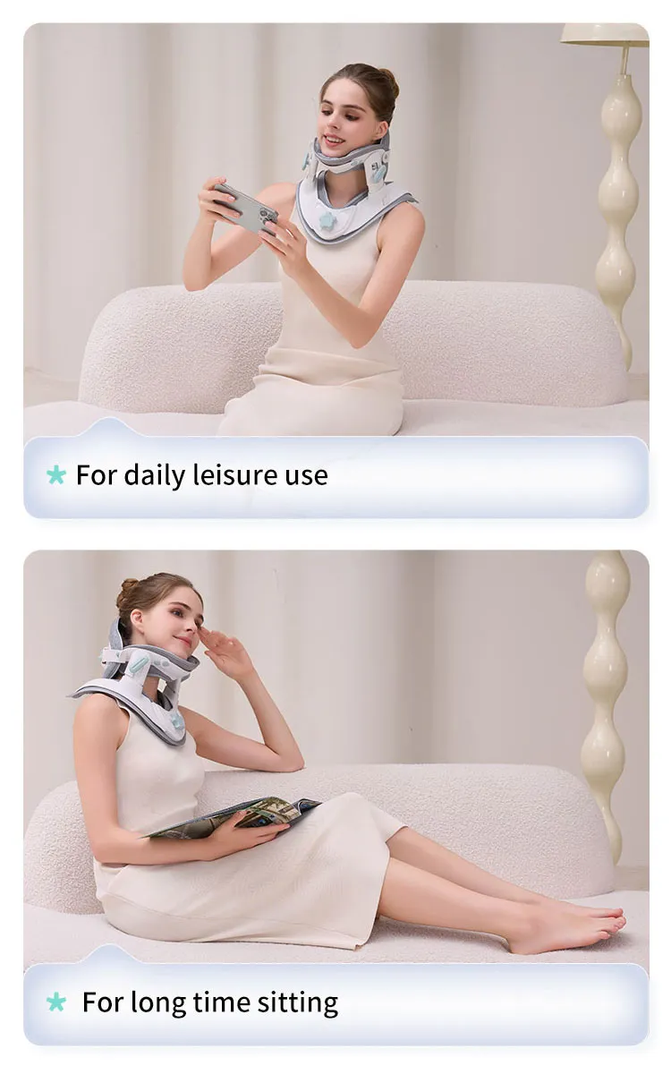 Alphay’s neck traction device is suitable for the treatment of cervical spondylosis, nerve root cervical spondylosis, cervical back myofascial inflammation, cervical disc herniation and other cervical spondylosis, as well as auxiliary fixation after cervical spine surgery. It make you easily achieve cervical traction at home and can be easily used during work, exercise, and household chores.